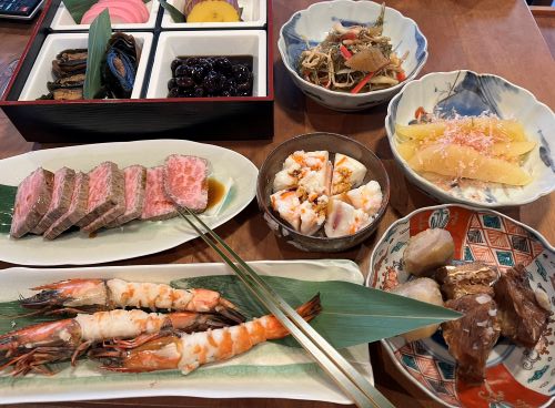 元旦には、お節とは呼べない程度の料理を並べ、小さなワインを一本開けた。