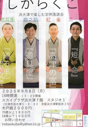 残暑厳しい浜大津、「スカイプラザ浜大津」にて第46回の「しがらくご」が9月8日に開催された。