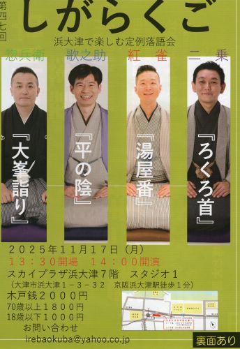 「しが落語」に通って2年あまり。こちらの耳が肥えたのか、以前ほどの新鮮な面白さは薄れた感もある。