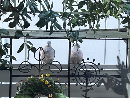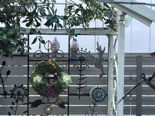 朝、庭に降り立った二羽のハトは、
