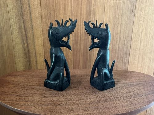 以前も記したが、バリ島の割れ門に似た木彫りのオブジェを手に取ると、案の定、裏に小さな蜘蛛の巣があった。