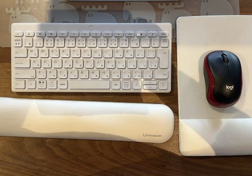 私は当初、こうした便利な周辺機器の存在を知らなかったが、とりわけリストレストは有難いものであった。机に肘をつく癖があり、肘の黒ずみが長年の悩みであった。しかしソフトな手触りのリストレストは負担を和らげ、作業能率を高めるのみならず、うたた寝には思いがけない程に役立っている。マウスパッドもまた、手首部分が柔らかく盛り上がったものに替えたことで、作業は格段に快適になった。