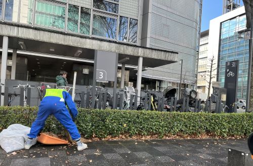 欅や銀杏の葉が道路に積もる様子は、眺める分には風情がある。しかし、足を滑らせれば事故にもつながる。誰かの責任になるのだろうか、などと余計なことを考えていたが、今日の清掃風景を見て、なるほどと腑に落ちた。