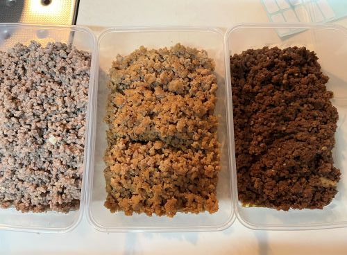 気がつけば三種類。少し作りすぎたかもしれないと思いながら、タッパーを冷凍庫に並べる。
