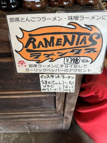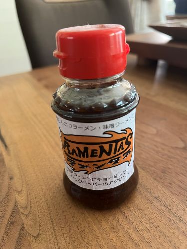 「ラメンタス」とは、ラーメンに少し加えることで旨味がぐんと増すように作られた調味料である。ラーメンのみならず、チャーハン、ハンバーグ、焼きおにぎりなどにちょい足ししても美味しくなると説明がある。