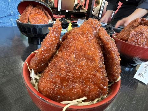 ヒレ肉が丼を取り巻くように立てられていた。その迫力だけでお腹がいっぱいになりそうであった。