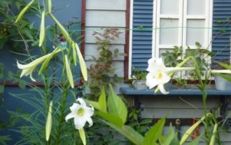 詳細を見る朝、ブラインドを開けると、先日から膨らみ始めていた高砂ゆりが咲いていた。 去年より1週間遅い開花になった。 なぜ家に咲くようになったのか経緯がわからないので「高砂ゆり」で調べて…