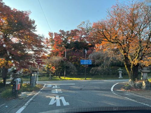 ⑶赤・紫・黄色が混ざり合う鮮やかな紅葉で、単調になりがちな高速道路に彩りを与える。
