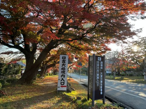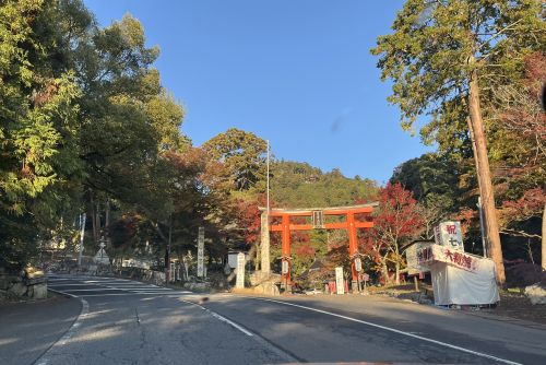 わざわざ日吉大社に出かけることはないが、早朝に参道を走ると、朝日を浴びて輝く紅葉に出会った。