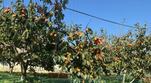例年であればこの時期、柿の木にはもう一つの実さえ残っていない。しかし今年はまだまだ木々は橙色の実を揺らしていた。
